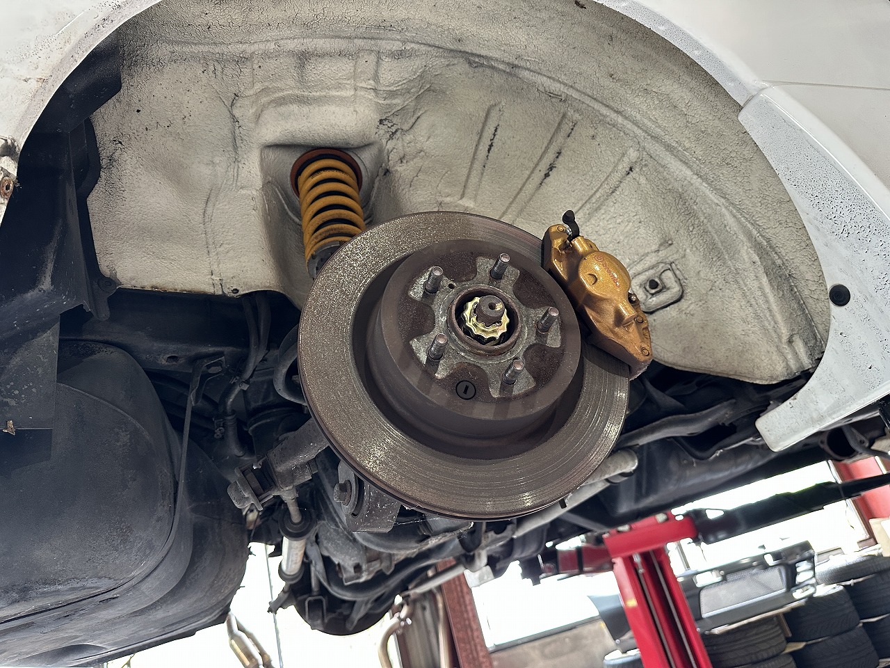 ストラットも33、34に比べればマシですが、こちらの車両は錆を取ると、穴が開いて地面が見えています。