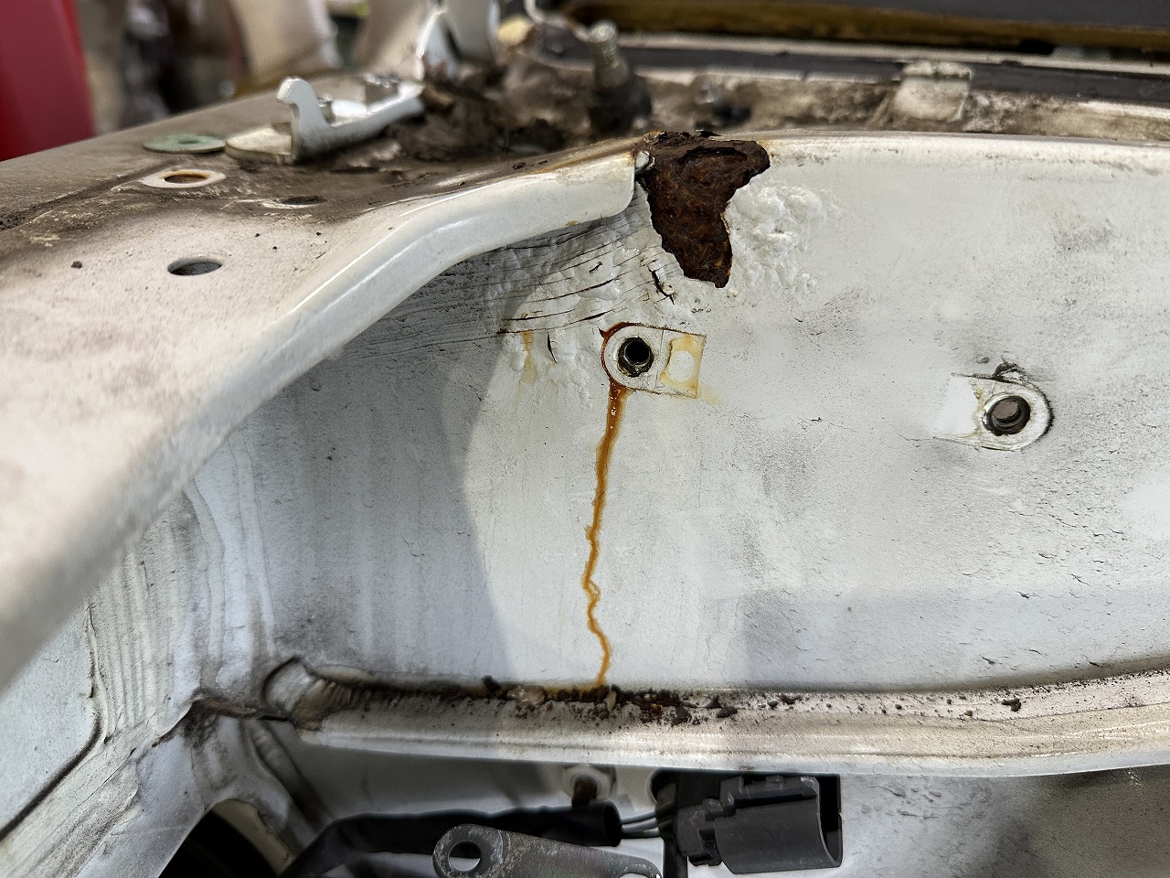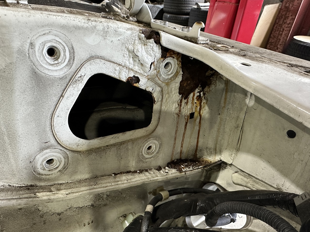 フロアにも穴が開いていますね、まずは錆、腐食箇所の修理から始めます。