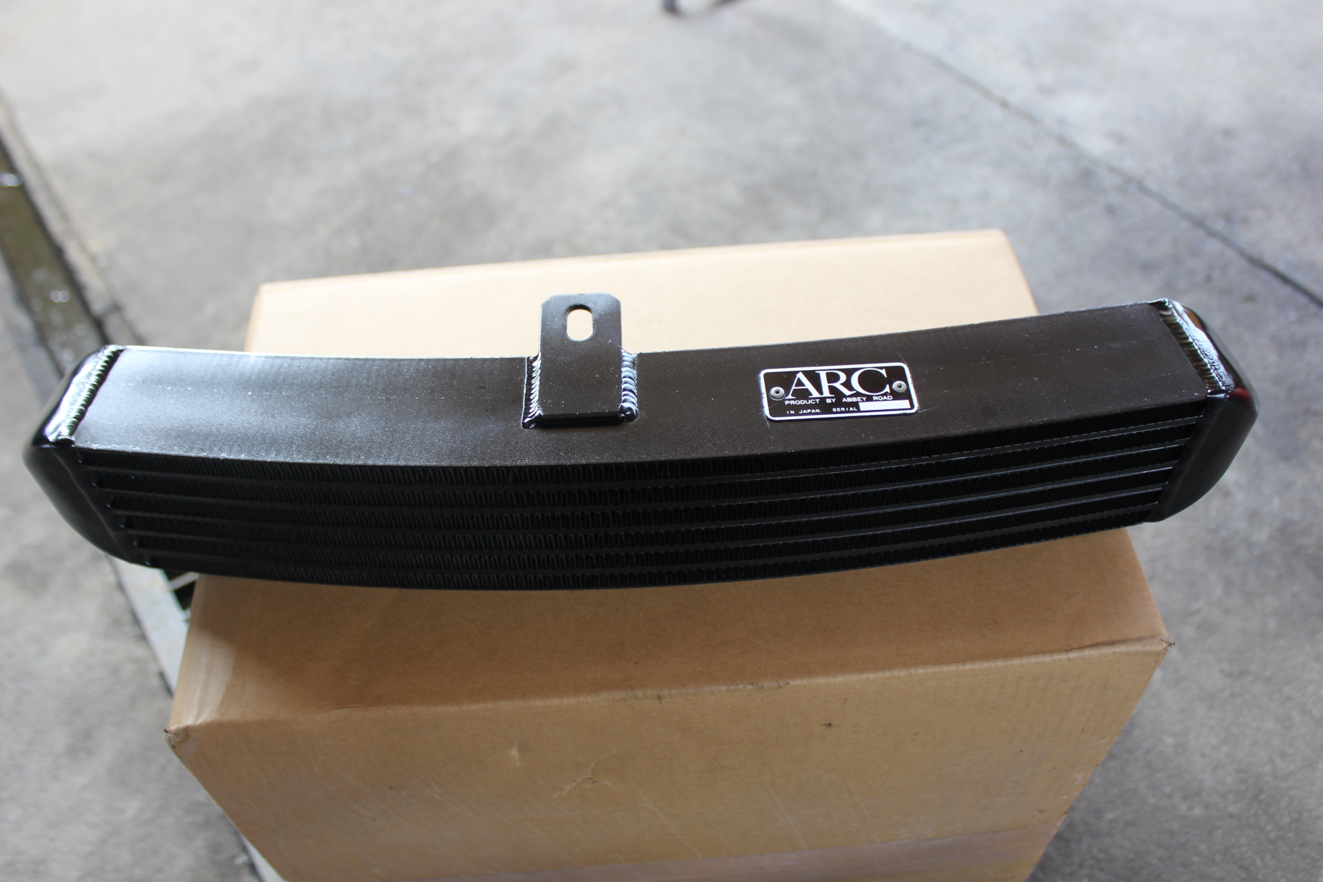 フロントグリル内にARCのオイルクーラーが付いていますが、黒の車体、グリルの中にシルバーのオイルクーラーの存在感がありすぎて・・・(好みにもよりますが)微妙な感じでしたので、